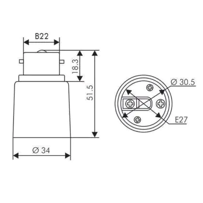 Descrizione Adattatore B22 => E27 - Bianco