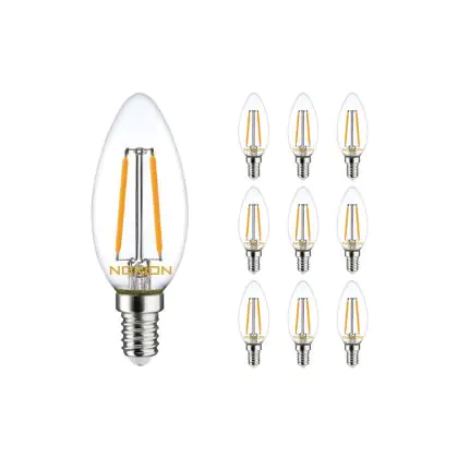 Confezione Multipack 10x Noxion Lucent LED E14 Candela Filamento Chiara 2.5W 250lm - 827 Bianco Molto Caldo | Sostitutiva 25W