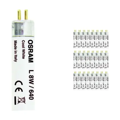 I Confezione Multipack 25x Osram Lumilux T5 8W - 640 Bianco Freddo | 29cm sono tubi fluorescenti di dimensioni inferiori rispetto ai T8 / TL-D. Si prega di controllare sempre la potenza e la lunghezza del tubo, in quanto sono correlati. Nel caso in cui si desideri effettuare una sostituzione di un tubo esausto è necessario acquistare un tubo con le stesse caratteristiche tecniche in termini di dimensioni e potenza. Per un elevato risparmio energetico si consiglia di scegliere soluzioni a LED..