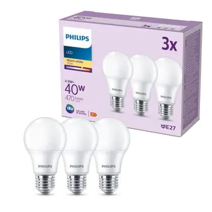 La Confezione Multipack 3x Philips Bulbo LED E27 Pera Ghiaccio 5W 470lm - 827 Bianco Molto Caldo è la perfetta sostituzione per la tua lampada convenzionale W con attacco E27 grazie alla sua tecnologia LED. Passare a LED ti offrirà tanti vantaggi!
