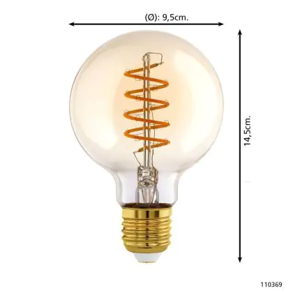 Descrizione Eglo LED Globe E27 Filamento Ambra 8W 806lm - 827 Bianco Molto Caldo | Dimmerabile - Sostitutiva 60W