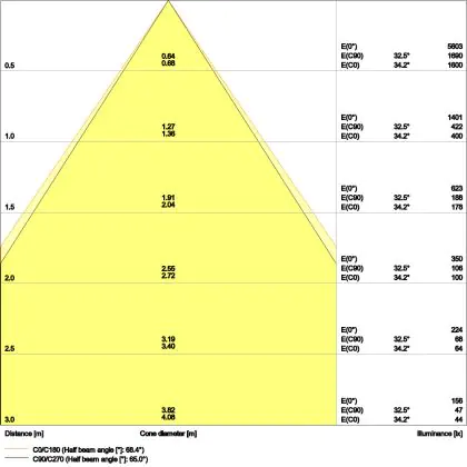 L'apertura del fascio luminoso indica l'angolo del fascio di luce proveniente da una lampada o lampadina. Si misura in gradi (D) e più piccolo è l'angolo, più piccola è l'apertura del fascio di luce.