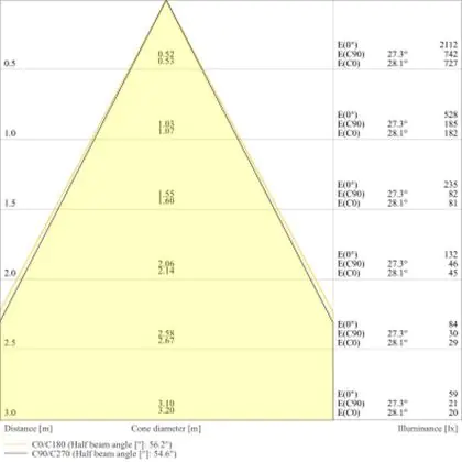 L'apertura del fascio luminoso indica l'angolo del fascio di luce proveniente da una lampada o lampadina. Si misura in gradi (D) e più piccolo è l'angolo, più piccola è l'apertura del fascio di luce.