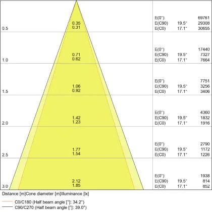 Apertura del fascio luminoso a 38° orientabile