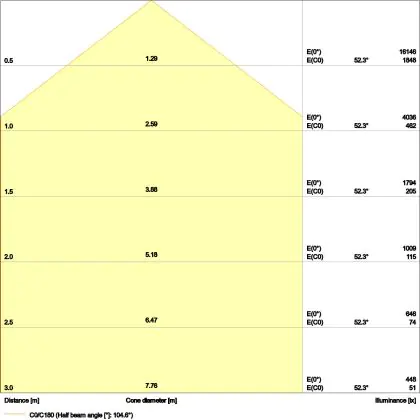 L'apertura del fascio luminoso indica l'angolo del fascio di luce proveniente da una lampada o lampadina. Si misura in gradi (D) e più piccolo è l'angolo, più piccola è l'apertura del fascio di luce.