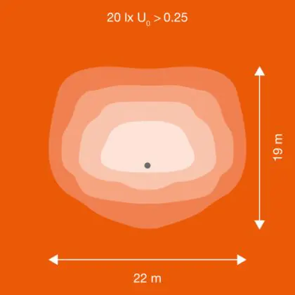 Questa lampada LED viene spesso usata per illuminare in modo ottimale aree piuttosto grandi. A questo scopo, serve un apparecchio che abbia alto rendimento luminoso in quanto maggiore è il rendimento luminoso, più grande è la superficie illuminata. Questo apparecchio emette una luce con potenza luminosa di 11300 lm e il rapporto lumen/watt di efficienza luminosa è di lm/W. Questo significa che l'apparecchio consuma poca energia per la quantità di luce che genera!
