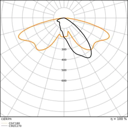 L'alloggiamento impermeabile di questa sorgente luminosa non è l'unica ragione per cui è perfetta per l'uso all'aperto. Infatti bisogna considerare anche la distribuzione della luce di questa lampada stradale, che ha apertura del fascio luminoso di 50x150° ed emette luce di colore .