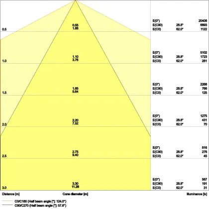L'apertura del fascio luminoso indica l'angolo del fascio di luce proveniente da una lampada o lampadina. Si misura in gradi (D) e più piccolo è l'angolo, più piccola è l'apertura del fascio di luce.