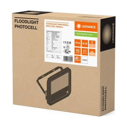 Descrizione Ledvance Proiettore LED Aluminium Nero 69W 10000lm 100D - 840 Bianco Freddo | IP66 - Sensore Di Luce - Simmetrico