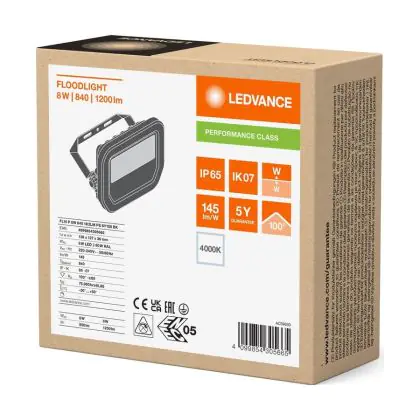 Descrizione Ledvance Proiettore LED Aluminium Nero 8W 1200lm 100D - 840 Bianco Freddo | IP66 - Simmetrico