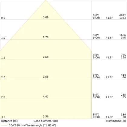 L'apertura del fascio luminoso indica l'angolo del fascio di luce proveniente da una lampada o lampadina. Si misura in gradi (D) e più piccolo è l'angolo, più piccola è l'apertura del fascio di luce.