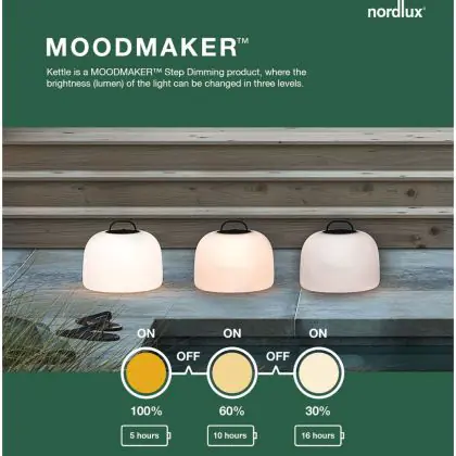 Descrizione Nordlux Kettle Luce a batteria Bianca 4.8W 300lm - 827 Bianco Molto Caldo | A 3 Livelli Dimmerabile