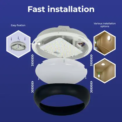 Prima di sostituire un vecchio apparecchio di illuminazione con uno nuovo è sempre consigliabile controllare le dimensioni. Installare questa plafoniera LED è molto facile: basta leggere attentamente le istruzioni e utilizzare il materiale di installazione fornito (viti, tasselli, ecc.). Se hai dubbi sull’installazione consulta un installatore certificato. Per questa lampada offriamo una garanzia di 5 anni.