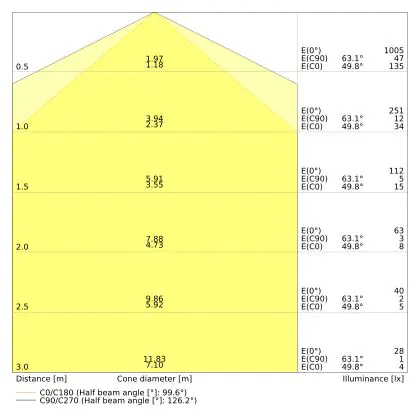Il codice colore è una combinazione di resa cromatica (CRI) e colore della luce (Kelvin). La prima cifra indica la resa cromatica (1 = resa del colore molto bassa, 9 = massima resa del colore), mentre la seconda e la terza si riferiscono al colore della luce. Esempio: il codice colore 830 indica una buona resa cromatica (8) e luce bianca calda (3000K). |