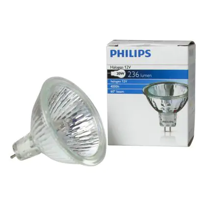 La Philips Brilliantline Dichroic 20W GU5.3 12VMR16 60D é una lampadina alogena dotata di una vita utile media di 3.000 ore ed una temperatura della luce di 3000K, cosí da offrire una luce vivace ed allegra. All'interno della lampadina sono presenti un filtro UV contro lo scolorirsi dei prodotti illuminati ed un riflettore che ne previene il surriscaldamento eccessivo. Un raggio di illuminazione di 60D é ideale per applicazioni di illuminazione generale.