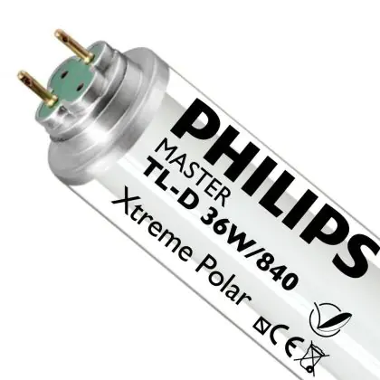 Le Philips TL-D Xtreme Polar sono lampade fluorescenti conosciute anche col nome di MASTER TL-D Polar Xtreme. Hanno un rivestimento in vetro doppio di 32 o 38 mm, é possibile utilizzare queste lampade in ambienti freddi, conservando una elevata qualità di illuminazione e una durata davvero lunga. Le Philips TL-D Xtreme Polar 36W 840 - 120cm hanno una base di tipo G13 e misurano 120 cm.